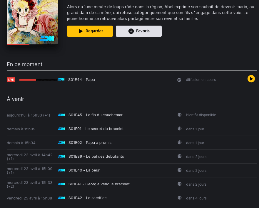 Planning des diffusions. Il y aura sans doute bientot un replay